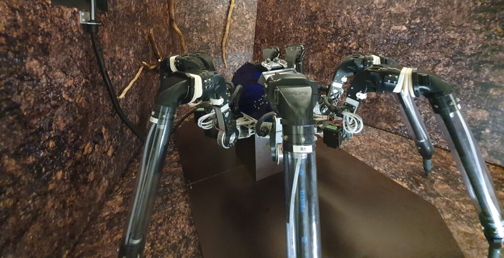 Der Prototyp ist inzwischen in eine Höhle im Bionicum eingezogen – direkt neben ihrem biologischen Vorbild, der Rotknievogelspinne.